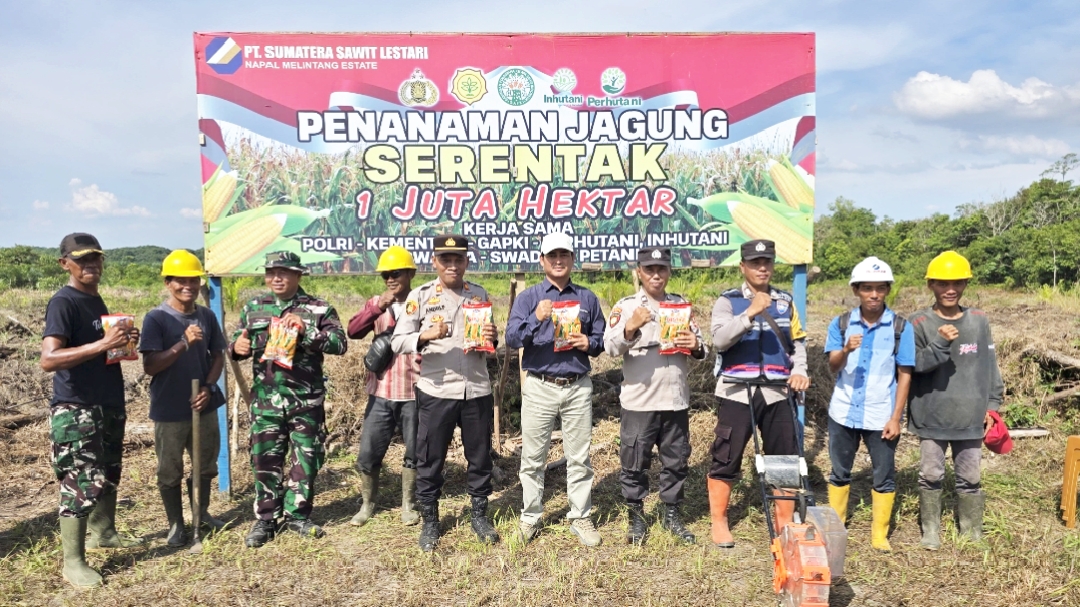 MEDIALUBUKLINGGAU.COM – Dukung swasembada pangan, PT Sumatera Sawit (SSL) Napal Melintang Estate berkolaborasi bersama Polres Musi Rawas Utara (Muratara) melaksanakan kegiatan Penanaman Jagung Serentak 1 Juta Hektar yang dipusatkan di Desa Batu Kucing, Kecamatan Rawas Ilir Kabupaten Muratara, Rabu 9 Juli 2025.
