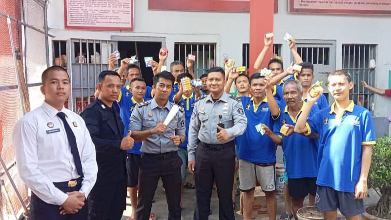Sebanyak 1005 warga binaan, masing-masingnya mendapatkan satu paket perlengkapan mandi yang terdiri dari sabun mandi dan shampo.