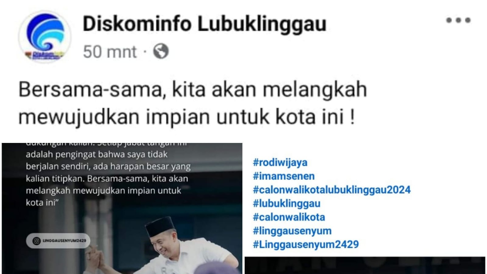 Dalam postingan beberapa waktu lalu, Diskominfo Lubuk Linggau menyebutkan salah satu pasangan balonkada dengan tagar calon Wali Kota Lubuk Linggau 2024, padahal seyogyanya tidak diperkenankan dilakukan oleh pihak Diskominfo sebagai lembaga kedinasan.